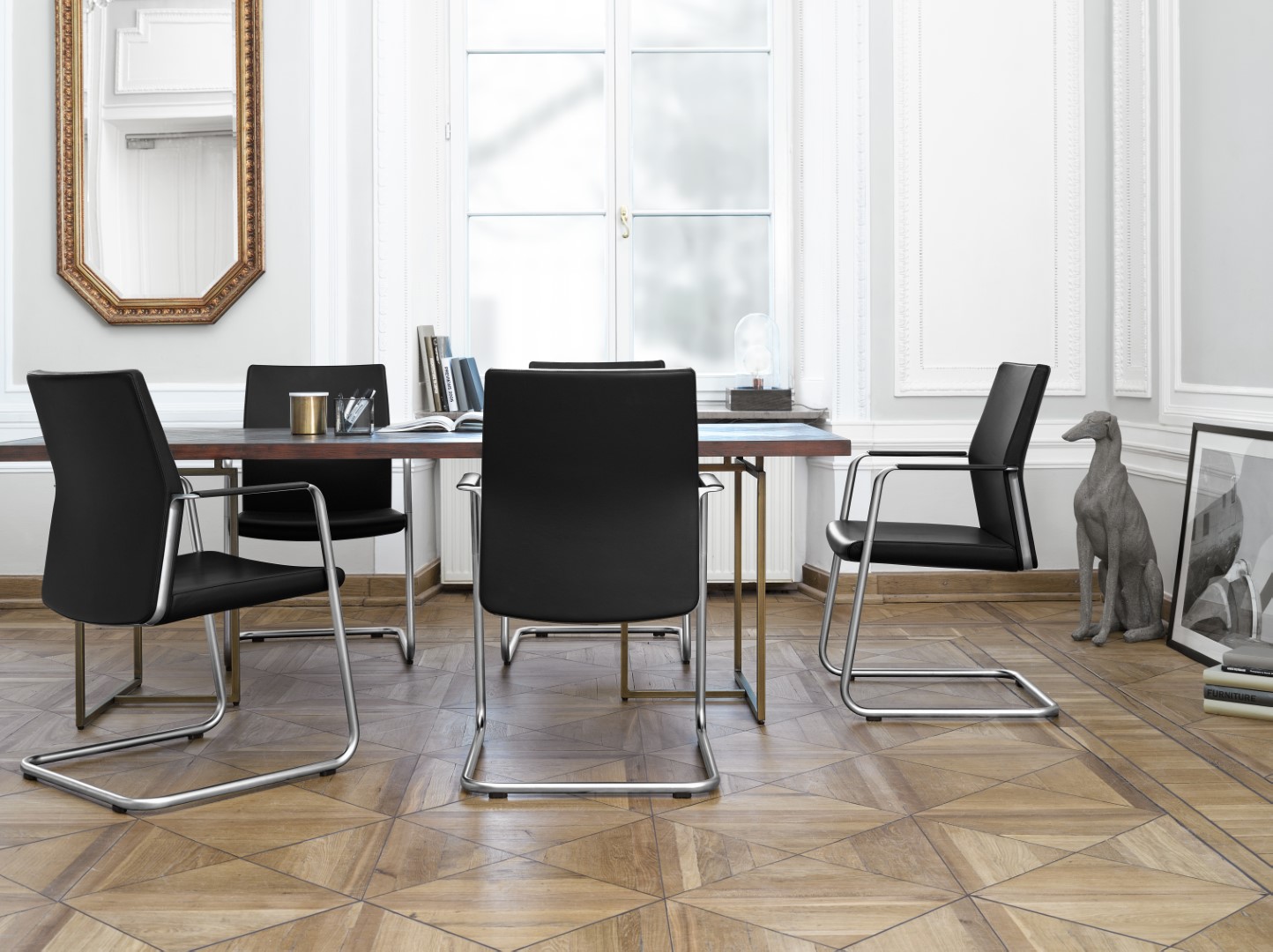 cantilever, low backrest, armrests (non-stackable version)