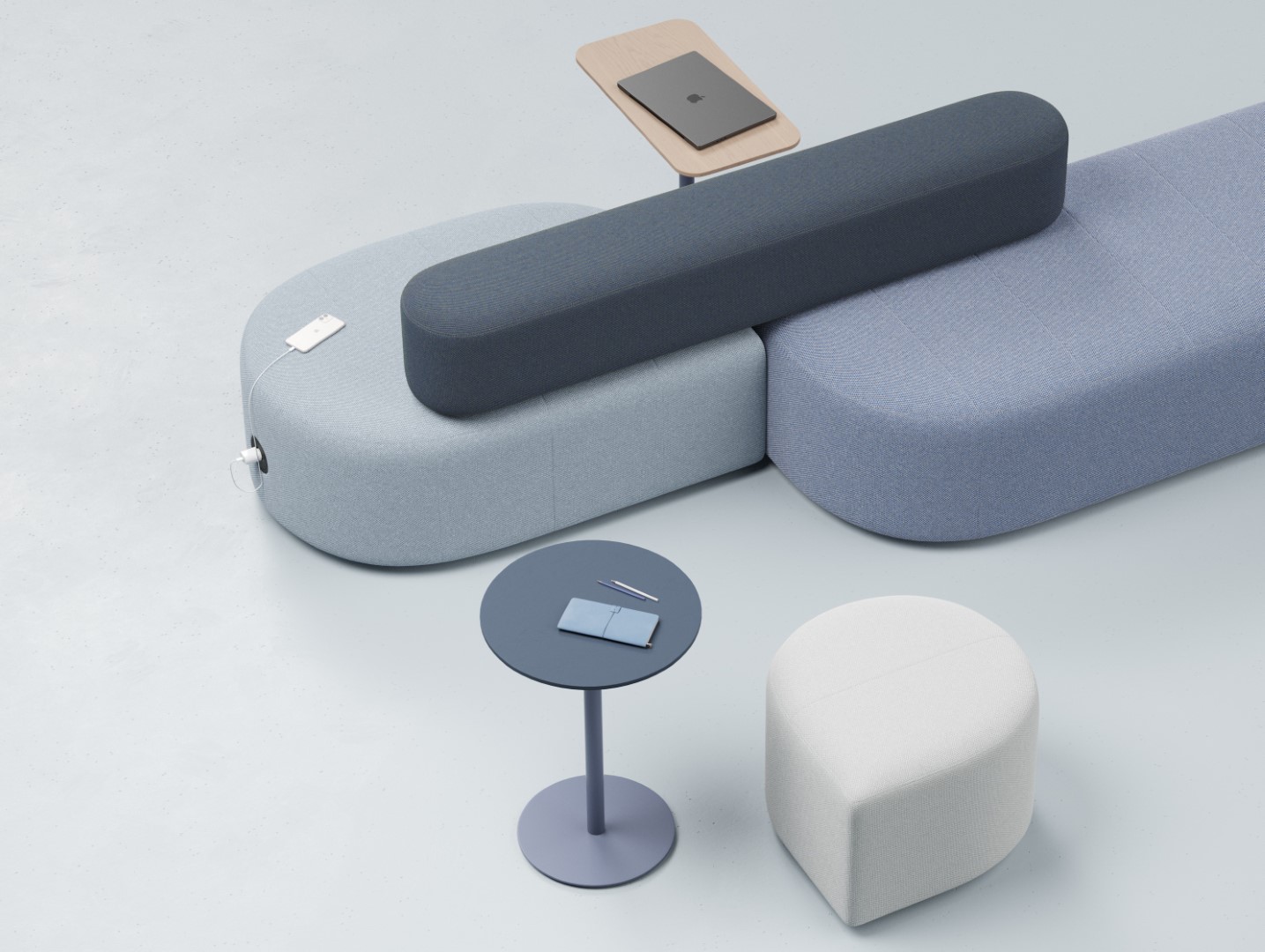 Konstrukcija: viršus pagamintas iš REPP* medžiagos (perdirbto putų polipropileno) su profiliuotomis putomis, visiškai apmuštas, Sėdynės apačia pagaminta iš faneros, Sudarytas iš putų